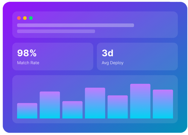 Our AI screens 10,000+ profiles weekly, then our experts interview the top 2%. You only see candidates who match your exact needs.